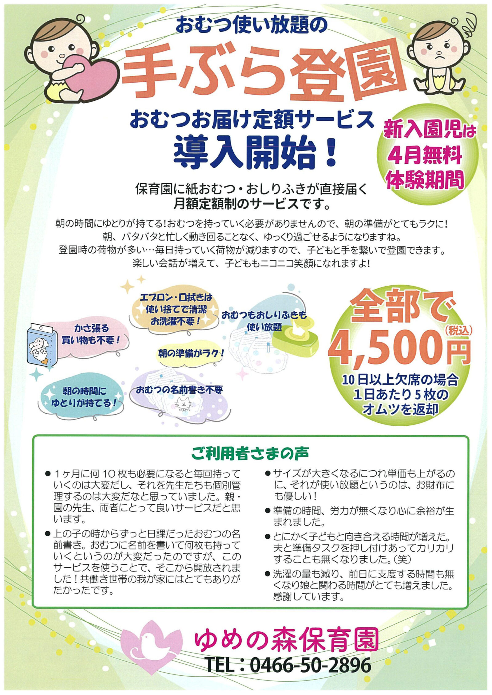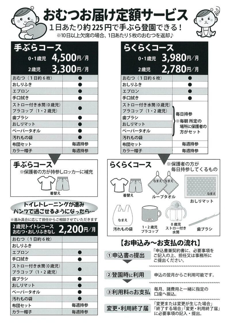 おむつ使い放題の「手ぶら登園」サービスをご利用いただけます!